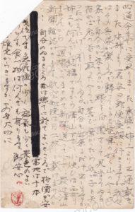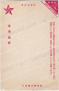 Below is a military air post card from Masaru Honjo of the Maruyasu Party, 38th Army, Shin 2949 Unit, Field Post Office 220 of the French Indochina Dispatch stationed in Hanoi to Kyoto City. Again, you can see the Japanese censor mark in front and an additional censor mark on the back. Among a general description of usual soldier’s sentiment, he writes: