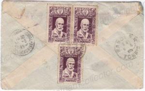 Here are interesting international letters that were mailed on August 20th, 1945 from Saigon to Malaysia. They were properly franked with 40C. While it was clear that after Hiroshima and Nagasaki the Japanese were not going to win the war they did not formally surrender until September 2nd, 1945. Japan also occupied Malaysia and this probably accounts for the fact that the letters were not censored at all. The increasing Viet Minh influence in the postal system is symbolized by the very rare propaganda cachet “Viet Nam Doc Lap” which means “Vietnam Independence” and that was struck on front. This cachet was only used on August 2nd of 1945 and then again from August 15th until the end of August, both in Saigon. It is exceedingly rare, especially on an international letter as there was little postal traffic after the Japanese took full control of Indochina in March of 1945.