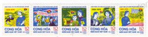 National Liberation Front, 5th Anniversary of Republic of South Vietnam, June 6th, 1974, Michel Nr. NLF 44-49; Six stamps all in 10 Dong nominals were issued in perforation 11.0. These were the first stamps that were issued in the currency of the South Vietnamese Regime.