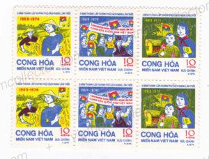 Part of this effort was a series of six stamps issued on June 6th of 1974 in celebration of the 5th Anniversary of Proclamation of the Republic of South Vietnam. The denomination was 10 South Vietnamese Dong each, the currency of the Republic of Vietnam. This may seem strange to some, but using South Vietnamese Dong made sense for the PRGRSV, as it was the currency actually in use in the South at that time. In the SICP Journal Volume X, Nr. 3 from May of 1980 Gregor Schwirtz stated: